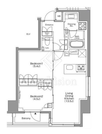 | 間取り | 2LDK | 専有面積 | 55.4m2 |