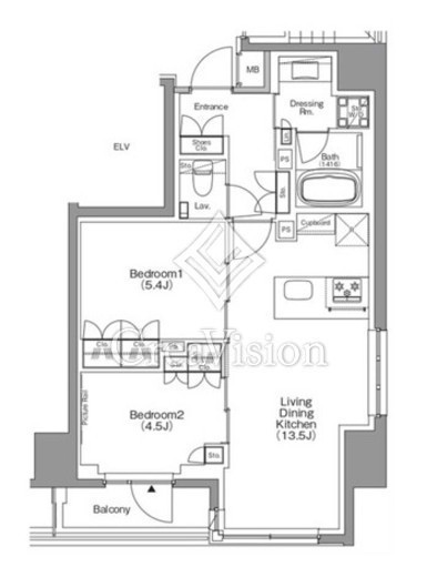 | 間取り | 2LDK | 専有面積 | 55.4m2 |