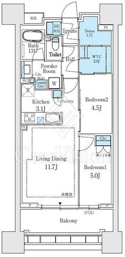 | 間取り | 2LDK+WIC+SIC | 専有面積 | 60.63m2 |