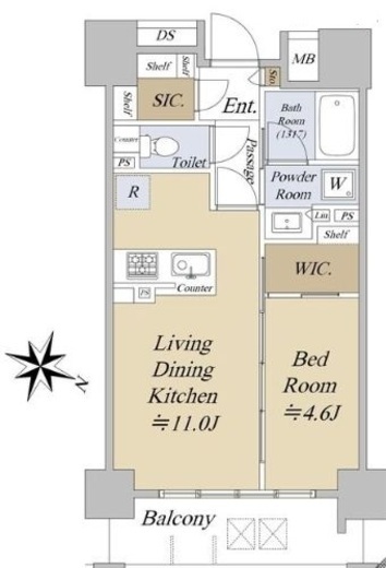 | 間取り | 1LDK+WIC+SIC | 専有面積 | 40.56m2 |
