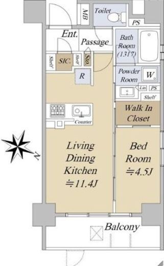 | 間取り | 1LDK+WIC+SIC | 専有面積 | 41.03m2 |
