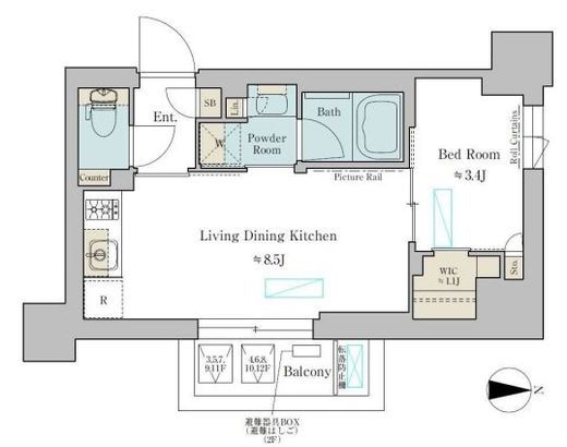 | 間取り | 1LDK+WIC | 専有面積 | 30.34m2 |