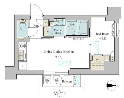 | 間取り | 1LDK+WIC | 専有面積 | 30.34m2 |