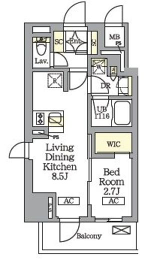 | 間取り | 1LDK+WIC | 専有面積 | 30.03m2 |