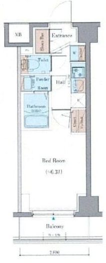 | 間取り | 1DK | 専有面積 | 21.25m2 |
