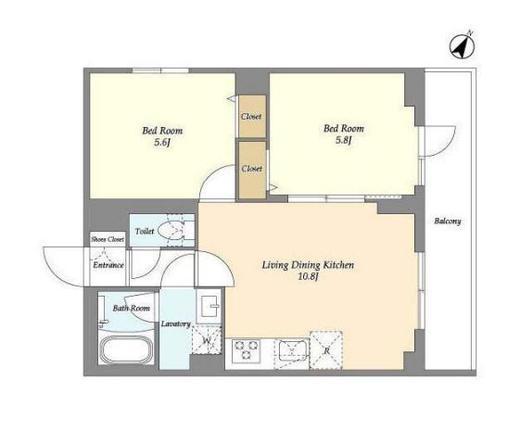 | 間取り | 2DK | 専有面積 | 48.6m2 |