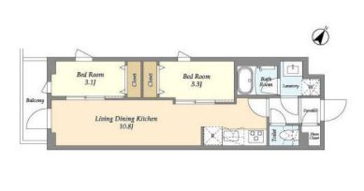 | 間取り | 2LDK | 専有面積 | 40.7m2 |