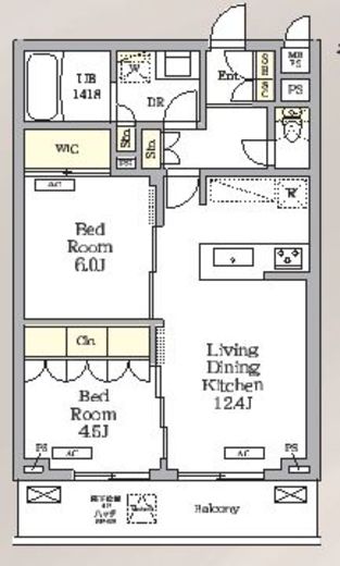| 間取り | 2LDK+WIC | 専有面積 | 54.63m2 |