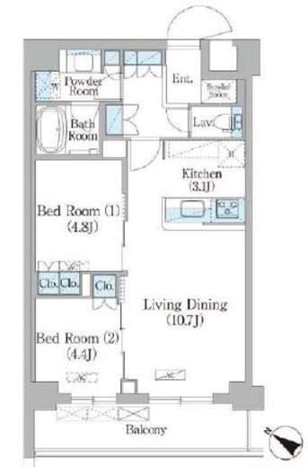 | 間取り | 2LDK | 専有面積 | 54.69m2 |