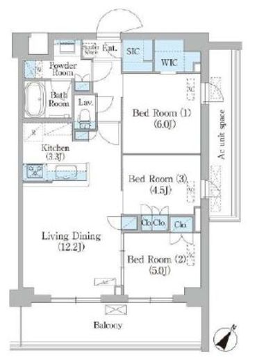 | 間取り | 3LDK+WIC+SIC | 専有面積 | 69.12m2 |