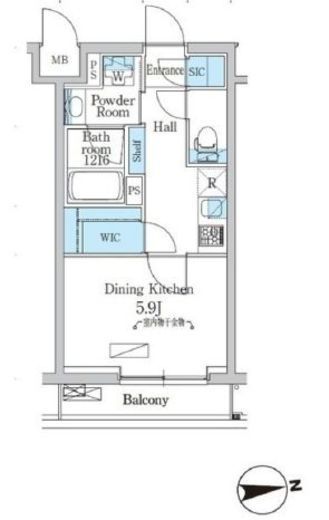 | 間取り | 1K+WIC+SIC | 専有面積 | 25.39m2 |