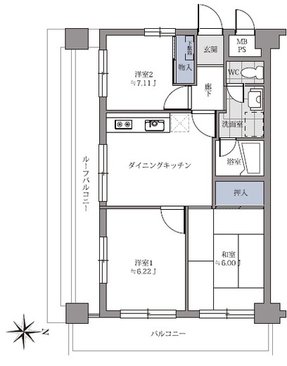 | 間取り | 3DK | 専有面積 | 52.25m2 |