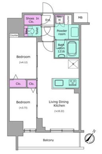 | 間取り | 2LDK | 専有面積 | 40.57m2 |