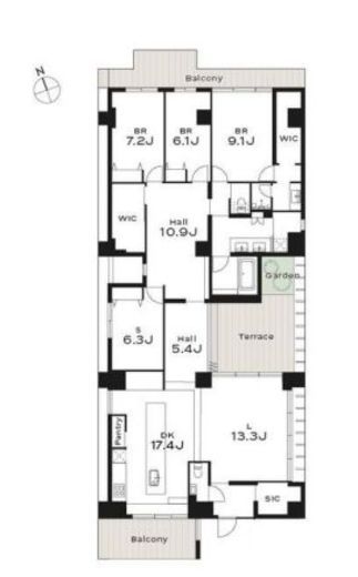 | 間取り | 3SLDK+WIC+SIC | 専有面積 | 187.11m2 |