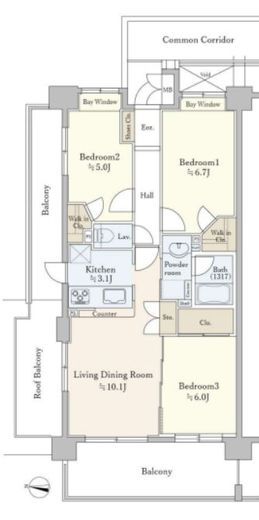 | 間取り | 3LDK+WIC | 専有面積 | 67.8m2 |