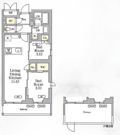| 間取り | 2LDK+WIC+SIC | 専有面積 | 46.12m2 |