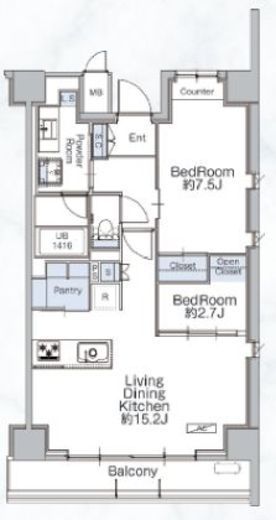 | 間取り | 2LDK | 専有面積 | 58.79m2 |