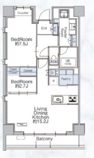| 間取り | 2LDK+WIC | 専有面積 | 59.63m2 |