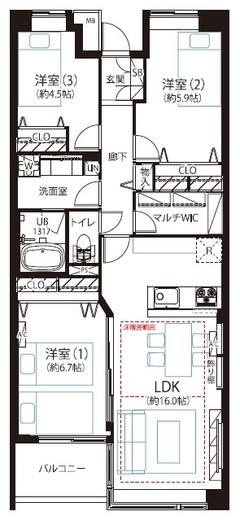 | 間取り | 3LDK+WIC | 面積 | 79.11m2 |