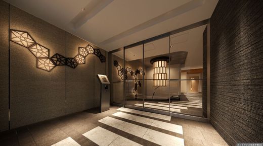 物件は地上14階、総戸数52戸、外観は和テイストなモダンな造形。