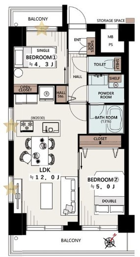 | 間取り | 2LDK | 専有面積 | 49.68m2 |