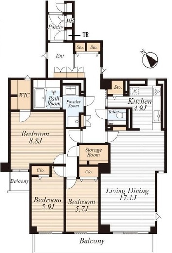 | 間取り | 3LDK+WIC | 面積 | 114.42m2 |