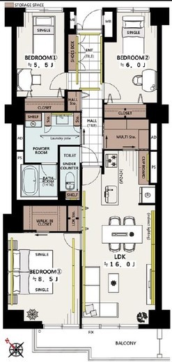 | 間取り | 3LDK+WIC | 面積 | 90.9m2 |