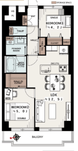 | 間取り | 2LDK+WIC | 面積 | 54.6m2 |
