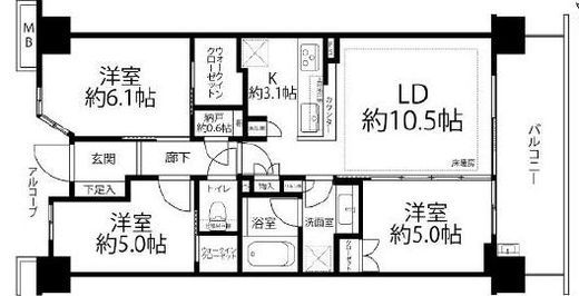 | 間取り | 3LDK | 専有面積 | 66.33m2 |