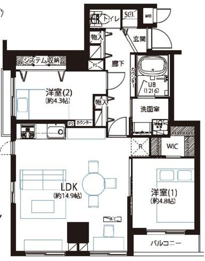 | 間取り | 2LDK+WIC | 面積 | 59.59m2 |