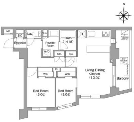| 間取り | 2LDK+WIC+SIC | 専有面積 | 54.13m2 |