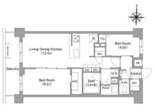 | 間取り | 2LDK+WIC+SIC | 専有面積 | 55.64m2 |