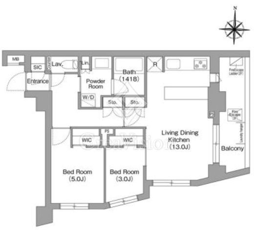 | 間取り | 2LDK+WIC+SIC | 専有面積 | 54.13m2 |