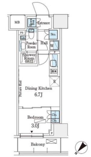 | 間取り | 1DK | 専有面積 | 26.4m2 |