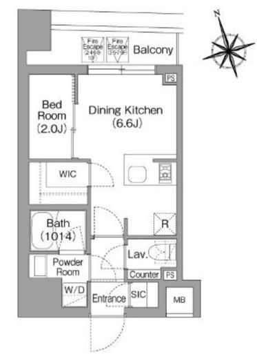 | 間取り | 1DK+WIC+SIC | 専有面積 | 25.13m2 |