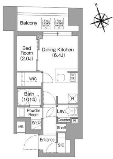 | 間取り | 1DK+WIC+SIC | 専有面積 | 25.7m2 |
