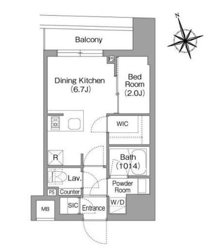 | 間取り | 1DK+WIC+SIC | 専有面積 | 25.13m2 |