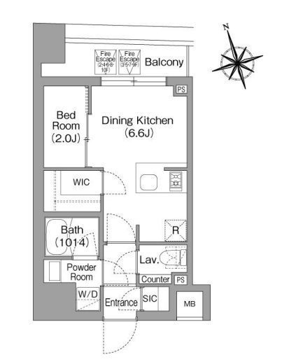 | 間取り | 1DK+WIC+SIC | 専有面積 | 25.13m2 |