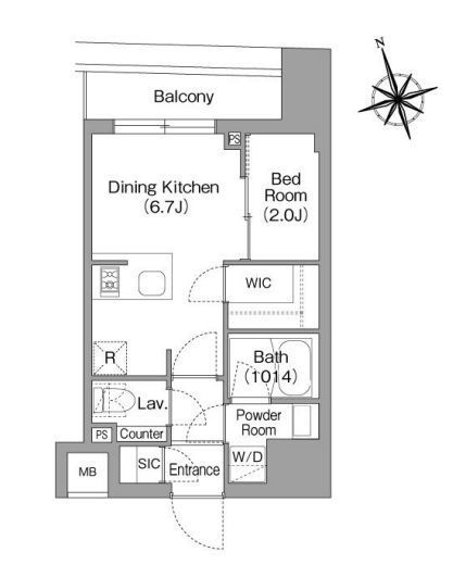 | 間取り | 1DK+WIC+SIC | 専有面積 | 25.13m2 |