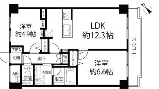 | 間取り | 2LDK | 専有面積 | 54m2 |
