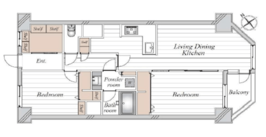 | 間取り | 2LDK | 専有面積 | 58.42m2 |