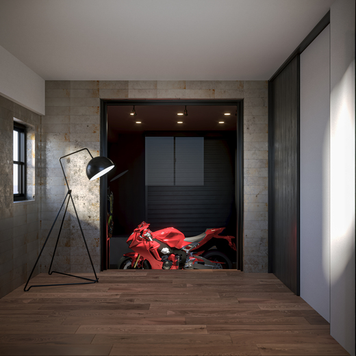 室内からで優雅にバイクを眺めることができ、バイクと共に暮らすことができる贅沢な仕様です。