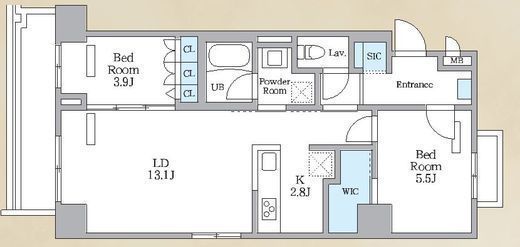 | 間取り | 2LDK+WIC+SIC | 専有面積 | 58.34m2 |