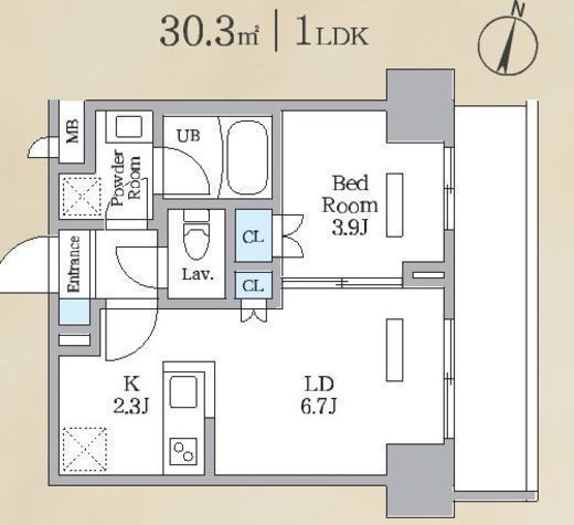 | 間取り | 1LDK | 専有面積 | 30.3m2 |