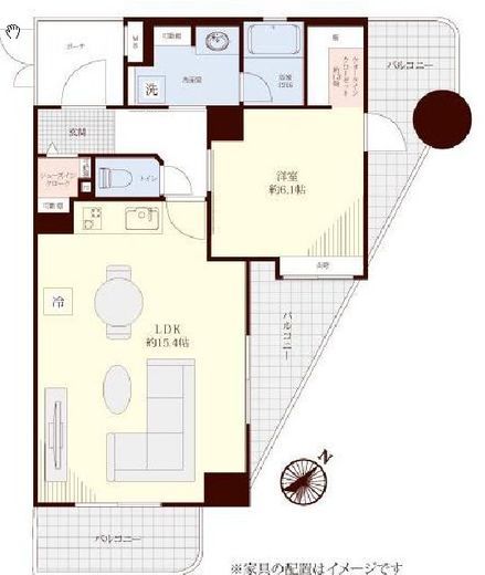 | 方角 | 南東 | バルコニー面積 | 15.4m2 |