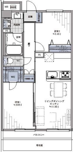 | 間取り | 2LDK+WIC | 面積 | 55.4m2 |