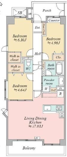 | 間取り | 3LDK+WIC | 面積 | 73.61m2 |