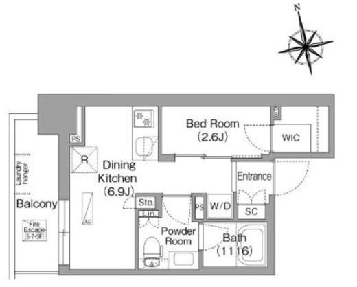 | 間取り | 1DK+WIC | 専有面積 | 25.02m2 |