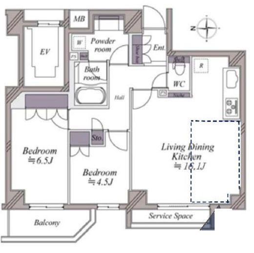 | 間取り | 2LDK | 専有面積 | 65.61m2 |