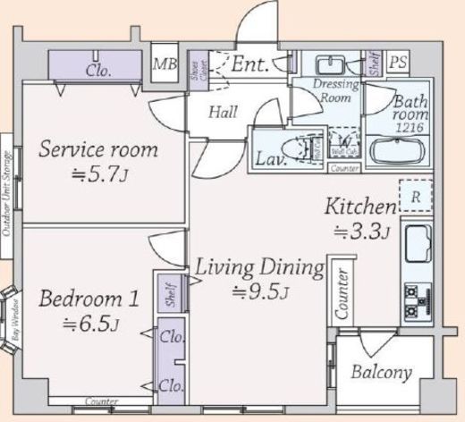 | 間取り | 1SLDK | 面積 | 56.5m2 |